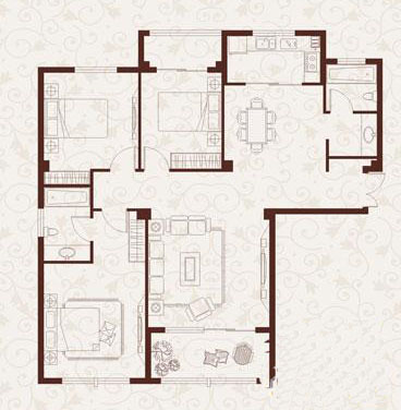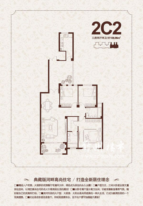 户型名称:2C2 户型结构:3室2厅2卫 户型面积: 平方米