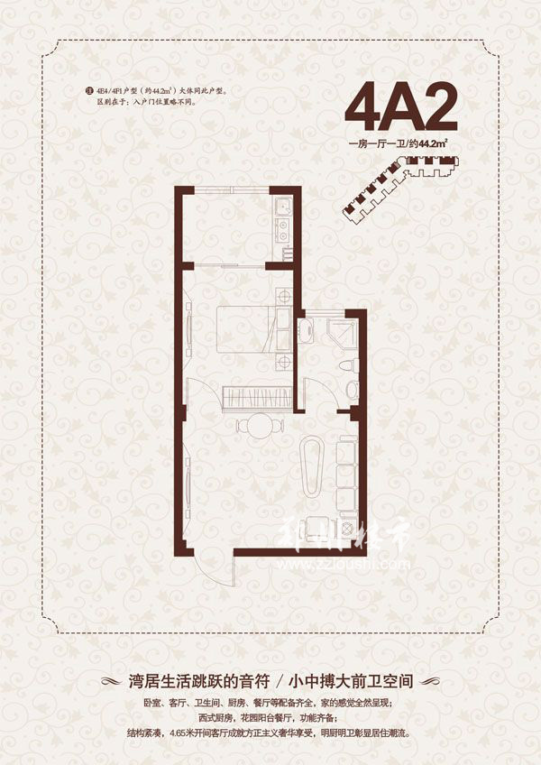 户型名称:4A2 户型结构:1室1厅1卫 户型面积: 平方米