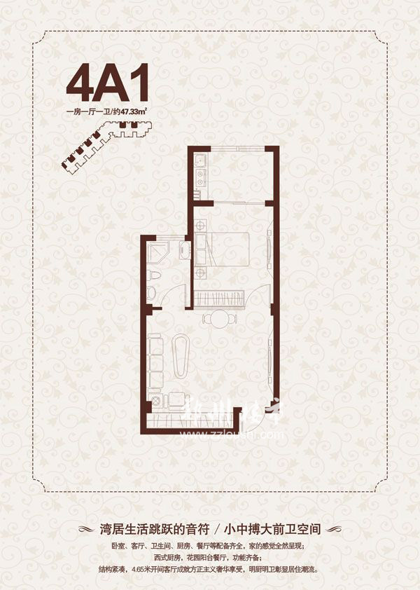 户型名称:4A1 户型结构:1室1厅1卫 户型面积: 平方米