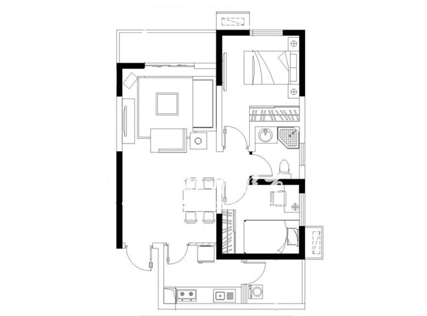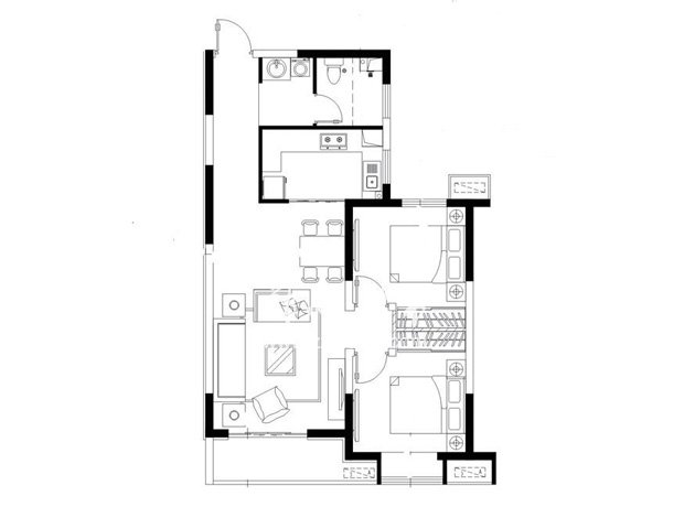 户型名称:3号楼G户型 户型结构:2室2厅1卫 户型面积: 75.17㎡ 平方米