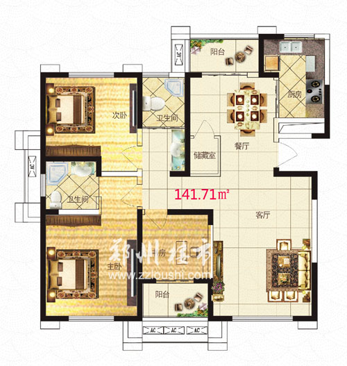 户型名称: 户型结构:4号楼3A户型 户型面积:141.71 平方米