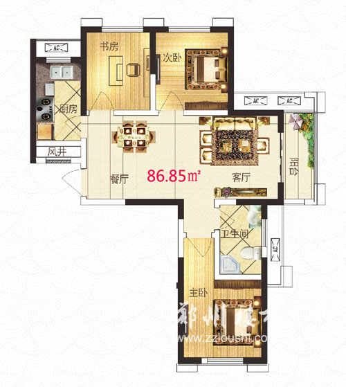户型名称: 户型结构:3号楼3A户型 户型面积:86.85 平方米