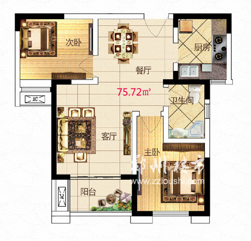 户型名称: 户型结构:4号楼3A户型 户型面积:75.72 平方米