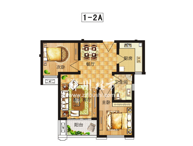 户型名称:1-2A 户型结构:两室两厅一卫 户型面积: 平方米