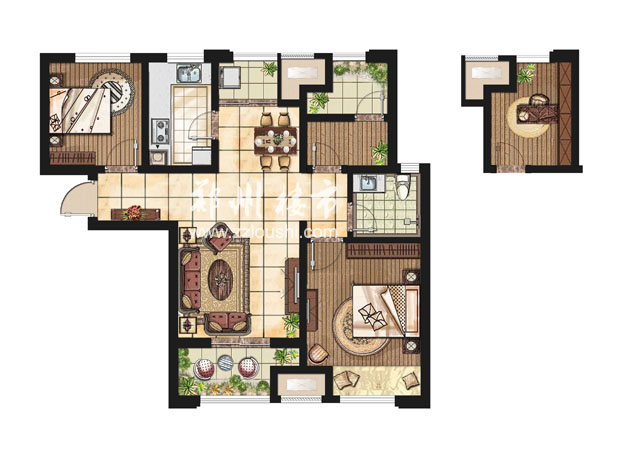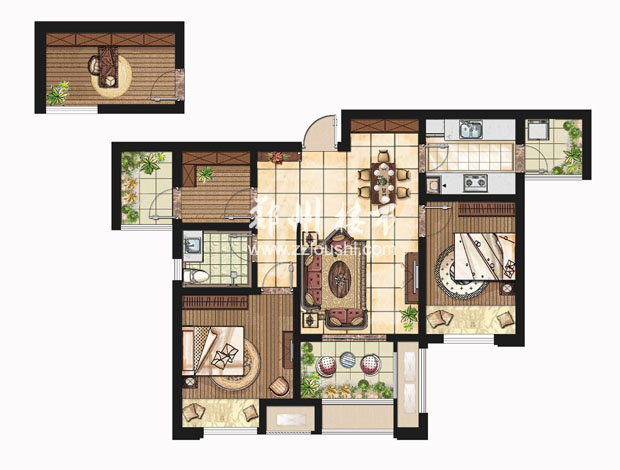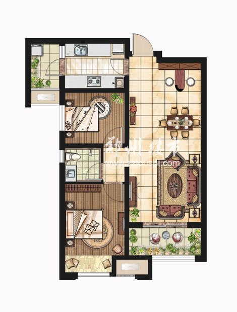 户型名称: 户型结构:两室两厅(可变三房) 户型面积:88 平方米