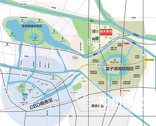 项目位于郑东新区龙子湖片区的核心区域,项目西侧为龙湖副CBD,北侧魏河、贾鲁河双河交汇,南侧为龙子湖大学园区;项目周边生态资源丰富,区域绿化率高达40%,坐拥国家级生态资源。周边拥有三横四纵立体交通网,中州大道、东三环、四港联动大道、京港澳贯穿南北,连霍高速、北三环、金水路横跨东西。项目紧邻地铁1号线、8号线,多条公交线路通达全城。