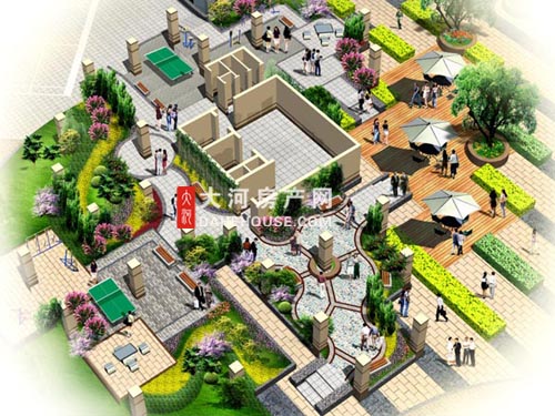 邀请国际著名园林景观公司---香港贝尔高林担纲设计。以最大化延伸绿地面积为原则,形成两个围合式中庭园林景观带,庭院间配以情趣各异的楼间小品、蜿蜒水系、原生树木、鹅卵铺石来营造内部景观,从而使园区在内环境上达到六维立体景观效果,绿地面积逾万平方米,绿地率30%以上,为中心城区之最。