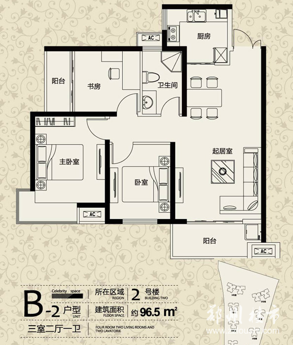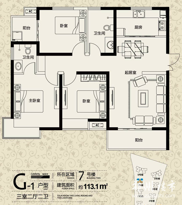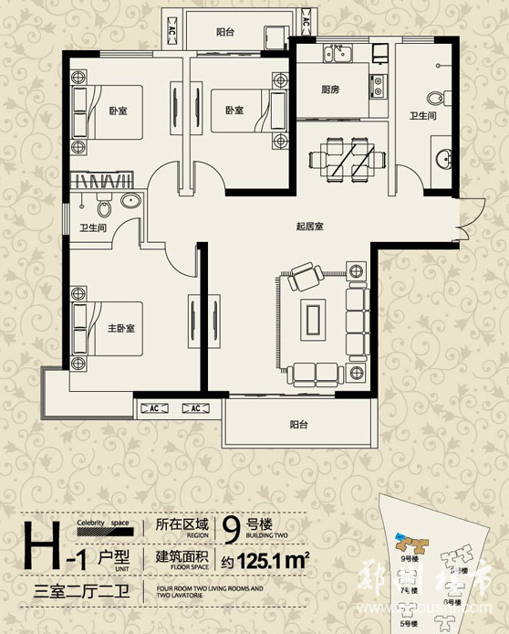 惠众西城一品主力户型:两房、小三房、三房、四房