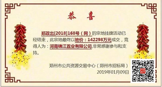 该地被河南锦江置业有限公司(杭州绿城集团)拿下,成交总价142298万,成交单价1174万/亩,楼面价8804元/㎡。背后股东为绿城房地产集团有限公司。