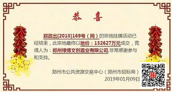 该地块最终以132627万元的价格,该地块折合单价为1419.8万元/亩,楼面地价为4736元/㎡,溢价率为18.3%。被郑州绿博文创置业有限公司竞得,背后股东为中国电建地产集团有限公司。