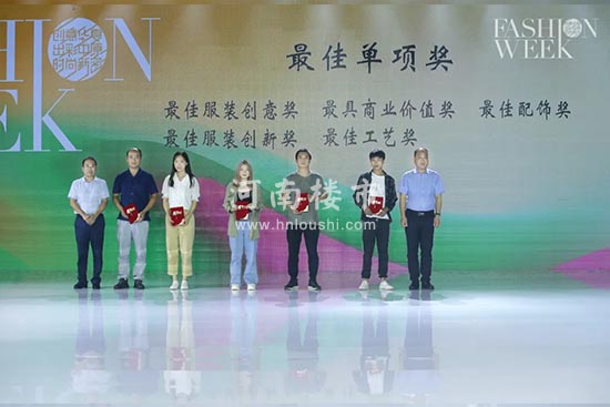 在颁奖典礼环节,豫发集团董事长王建勋、总经理郝明分别上台为“最佳单项奖”和“十佳模特奖”颁奖。