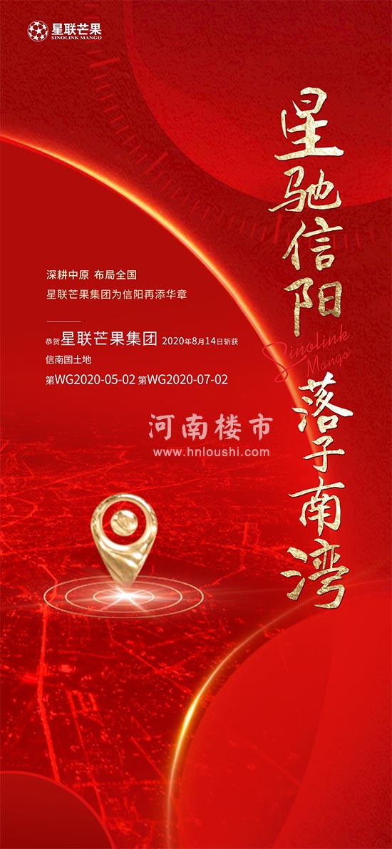 该地块的成功竞得,是星联芒果集团进驻信阳的第一站。未来,星联将不断发展,在尊重城市、尊重土地文化的基础上,再拓蓝图。为信阳的发展助力、为信阳的生活焕新,旨为营造集健康、自然、舒适、品质的城市人居新封面。