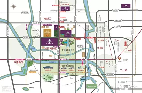 政府规划中对该区域的定位是将常西湖新区建设成为郑州西部高档的行政中心、高端的商务服务中心、高尚的生态宜居中心、高品位的休闲旅游中心以及先进文化传承中心,形成集行政、商务、居住、旅游休闲度假为一体的国际一流、国内知名、省会领先的核心都市区域。