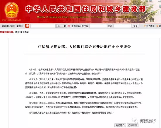 8月20日,住建部、央行联合召开重点房地产企业座谈会,形成了重点房地产企业资金监测和融资管理规则……市场化、规则化、透明化的融资规则,有利于房地产企业形成稳定的金融政策预期,合理安排经营活动和融资行为,增强自身抗风险能力,也有利于推动房地产行业长期稳健运行,防范化解房地产金融风险,促进房地产市场持续平稳健康发展。