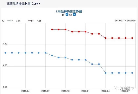 8月20日,中国人民银行授权全国银行间同业拆借中心公布,2020年8月20日贷款市场报价利率(LPR)为:1年期LPR为3.85%,5年期以上LPR为4.65%。以上LPR在下一次发布LPR之前有效。