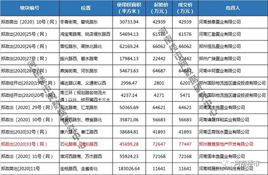 在8月份已成交的13宗956亩地块中,仅有郑州雅宸房地产开发有限公司(雅宝地产+龙湖地产)获得的位于三环内石化路与城东路的一宗地块溢价率为6.6%,其他住宅地块均以起始价成交。