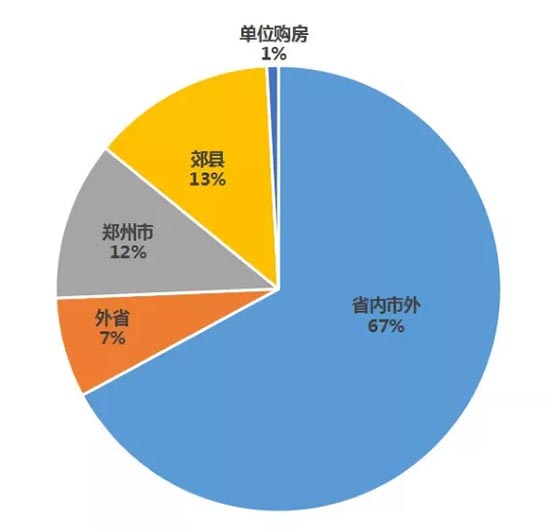在2019年郑州房地产销售市场中,郑州域外客户成为购房大户,占整个购房群体的75%左右,其中省内其他地市成为郑州房地产交易市场的购房主力军。