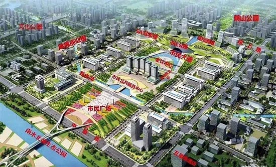常西湖新区整体规划核心区以南水北调总干渠为界,分为南北两部分。北侧为市民公共服务区和九州坊,核心功能为行政办公,包括会议中心、行政办公、商务办公、市民公园等;南侧包括四个中心和文化产业园区,核心功能为公共文化活动。