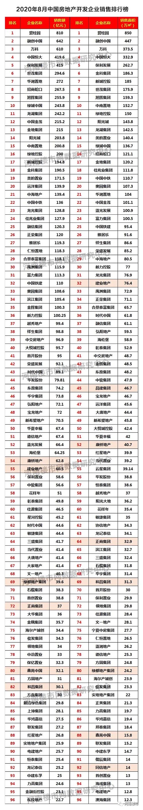 8月份房企销售排行榜