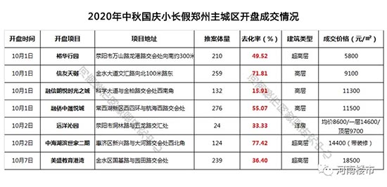 “窥一斑而知全豹”,从“十一”假期间郑州主城区多项目开盘去化情况,也能反映出市场整体销售情况!