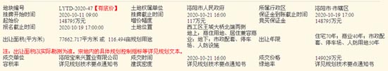 LYTD-2020-47号地块:位于西工区王城大桥北端两侧,出让面积为77662.717㎡(116.49亩),土地用途为居住兼容商业,出让年限为住宅70年、商业40年。挂牌起始价为148795万元。