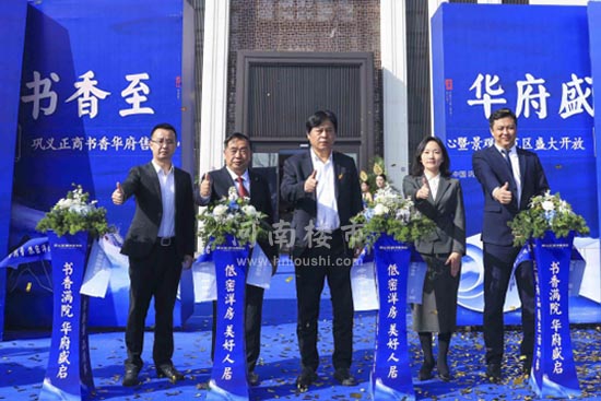 万众期待,正商集团副总裁张国强先生、郑州日报地产部主编刘文良老师、正商集团巩义区域总经理周兵女士、正商集团营销经理林宝珠先生以及恒辉公司总裁赵中亚先生等领导共同剪彩,宣告正商书香华府售楼中心暨景观示范区正式开放接待各界来宾。