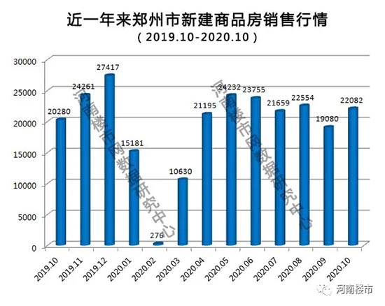 10月份郑州全市商品住宅销售18133套,较去年同期上涨了30.21%;商品住宅销售面积209.36万平方米,较去年同期上涨了32.86%。