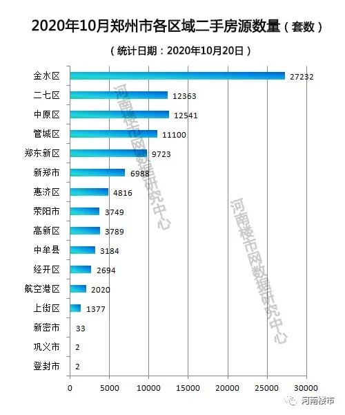 其中金水区待售二手房源数量一直位居全市第一,10月份略有下降,但仍达到27232套;二七区、中原区、管城区、郑东新区等待售房源数量超过或接近万套。