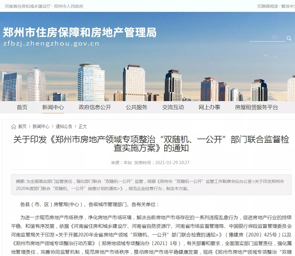 郑州市房地产领域专项整治“双随机、一公开”部门联合监督检查实施方案