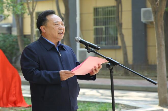 郑州大学党委副书记谷振清致辞,他代表全校师生向一如既往支持和回馈母校的张敬国校友表示感谢。他说,近年来,学校先后进入国家一流大学建设序列和部省合建高校行列,实现了历史性跨越;统筹疫情防控和一流建设两条战线,实现“双胜利”:在全省全国率先实现学生返校复学,高质量完成一流大学一期建设任务,QS上榜学科数量达到历史新高。他表示,张敬国校友在2018年捐赠1亿元基础上再次捐赠1千万元,支持医学院宿舍楼加固改造,充分彰显了他对母校的拳拳之心和殷殷之情。《沃泽黉门》纪念石的落成不仅标志着医学院学生返校搬迁工作圆满结束,也蕴含着校友们对郑大学子前途似锦的美好祝愿。他指出,学校正处在全面开启一流大学第二个建设周期的历史关键期,希望广大校友一如既往地关注、关心和支持母校建设发展。学校也将进一步做好校友工作,全力支持校友事业。