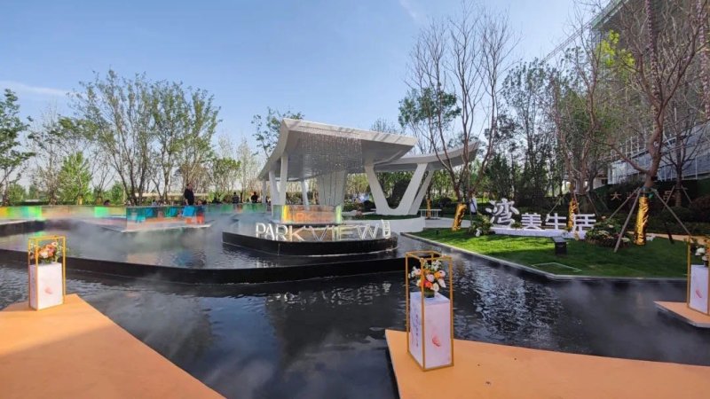 整个景观示范区以落瀑、叠溪、草坪、水苑、浮桥、曲径等丰富景观元素的有机融合,营造动与静、情与景、自然与人文的和谐统一;漫步其间,总能在不经意间打动人心,令人心驰神往。
