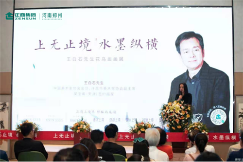 在致辞中,正商集团赵春华女士表示,很荣幸能够邀请到著名画家王白石先生在正商上境系举办本次“水墨纵横 上无止境”主题画展。王白石先生对绘画艺术永无止境的追求,与正商集团以极致匠心打造上境系产品的态度不谋而合。正商27载始终怀着对中原土地的深情厚谊,为改善城市人居环境,提高城市文化品位,重塑城市美好生活不懈努力。未来,正商集团将持续为满足人们对美好生活的向往和追求而不断前行。