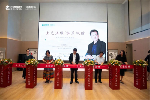 精彩的分享之后,王白石先生现场挥毫泼墨,为本次画展书写瑰宝“上无止境·水墨纵横”并赠予正商集团,送上了对上境系的美好祝愿。随后,王白石先生、画展指导老师王丽丽女士、省直文联主席殷江林先生、正商集团北龙湖事业部总经理赵春华女士以及上境系业主代表高李丽女士,共同为此次活动剪彩,正商上境系与王白石先生的艺术盛夏正式开始。