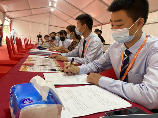 美好生活是检验园区高品质建设的最高标准,而服务是构成一切美好生活的链接。交付现场,工作人员全力以赴,以蓬勃的朝气、热情的服务,认真服务每一位家人。