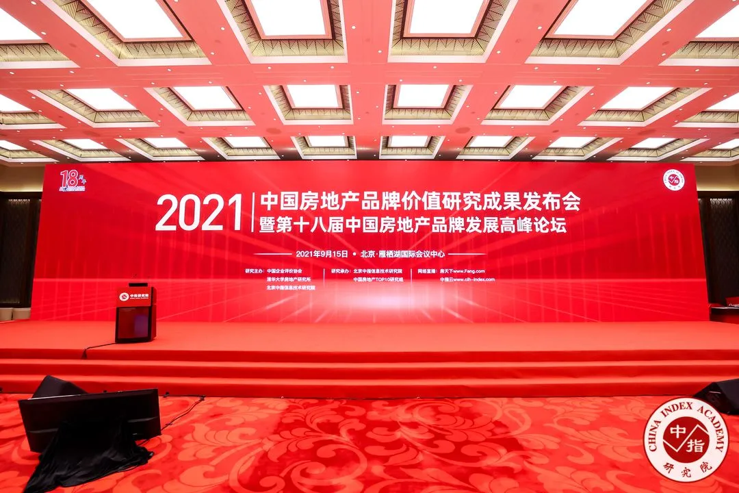 2021年9月15日,由中国企业评价协会、清华大学房地产研究所、北京中指信息技术研究院主办,北京中指信息技术研究院中国房地产TOP10研究组承办的2021中国房地产品牌价值研究成果发布会暨第十八届中国房地产品牌发展高峰论坛在北京隆重召开。