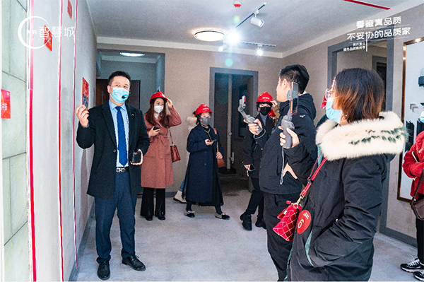 在参观动线中,最吸引媒体朋友们关注的就是工艺工法样板间和交付样板间,它就像一本立体的工程说明书,将平日里看不到的“家的背面”清晰地呈现在面前,并亲身感受户型空间的格局与设计。工艺工法样板间将影响住房质量的细节以工序分解和实物展示的方式,呈现于实体楼幢的实体房间里。工程师用通俗易懂的语言,深入浅出地为来宾们讲解砌体施工效果、抹灰工艺、地坪工艺、第三方测评实测等专业知识,这一切,只为呈现家的匠心品质。