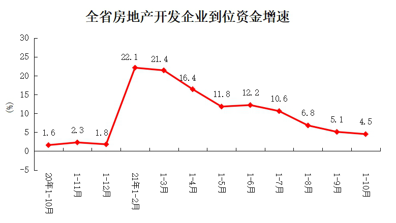 2021年1-10月份,全省房地产开发投资6382.84亿元,同比增长4.4%,比2019年1-10月份增长8.6%。其中,住宅投资5413.22亿元,增长7.2%。