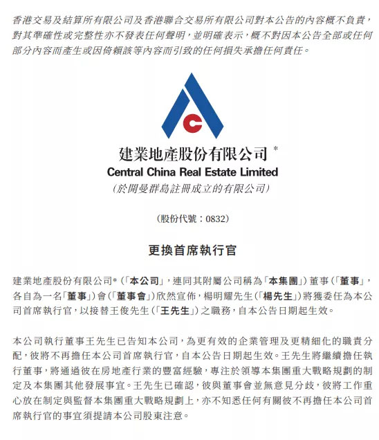 建业地产:杨明耀接替王俊成为首席执行官【图文】