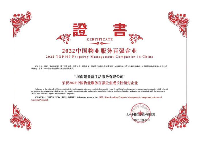 同时,建业新生活旗下物管项目洛阳建业·尊府荣获“2022中国物业服务行业示范基地”称号,安阳建业·世和府、商丘建业·天筑荣获“2022中国五星级物业服务项目”称号。