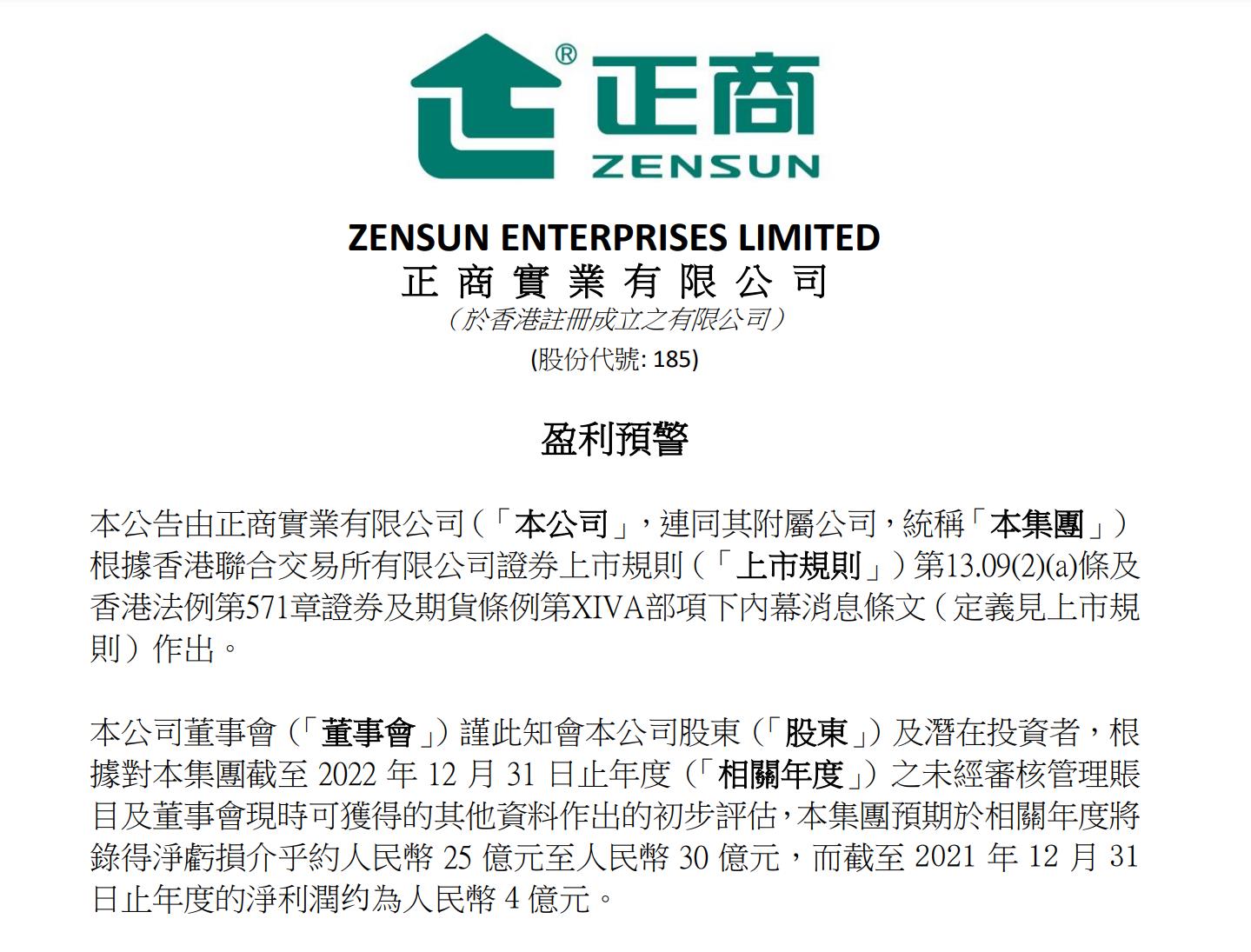 由赢转亏!正商实业预计2022年净亏损25亿至30亿元