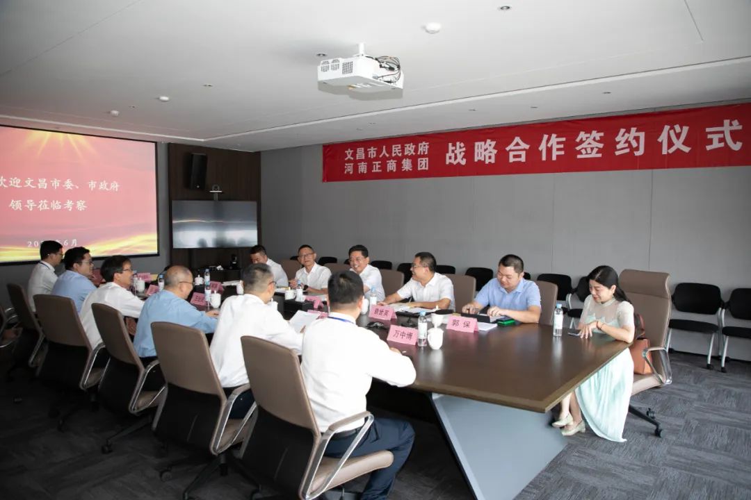 会上,双方代表介绍了各自情况,交流了合作意向。随后,正商集团副总裁、正商实业集团董事长王金虎,文昌市委常委、副市长袁世英分别代表正商集团和文昌市人民政府签署战略合作协议,正商集团董事长张敬国、文昌市委书记龙卫东等领导证签。正商集团将在合适时机,按照文昌市发展战略和切实需求,围绕产品进出口贸易、旅游地产和工业地产开发、城市基建配套和城市更新、教育和医疗大健康产业等相关领域进行投资建设,实现双方合作共赢,为文昌市的发展贡献力量。文昌市委市政府支持正商集团充分利用自贸港政策,发挥企业自身优势,全力推动相关项目落地落实,继续为正商集团在文昌的投资建设提供优质的营商环境,助力海南自贸港建设。