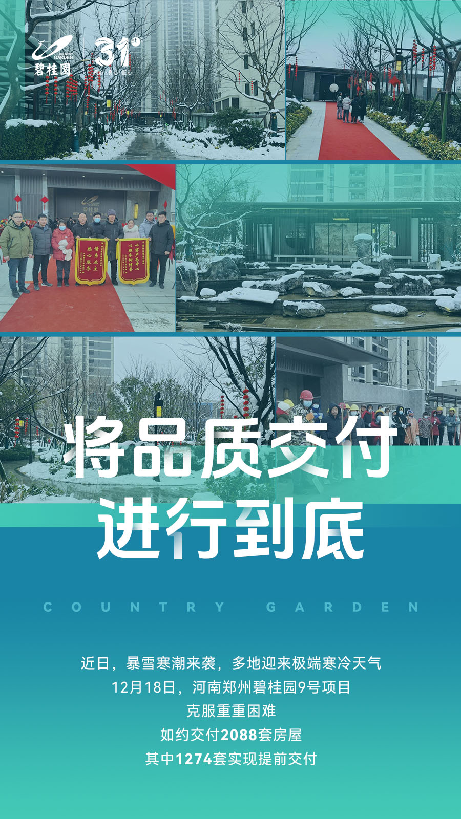 暴雪寒潮中,郑州碧桂园9号院2088套房屋如约交付